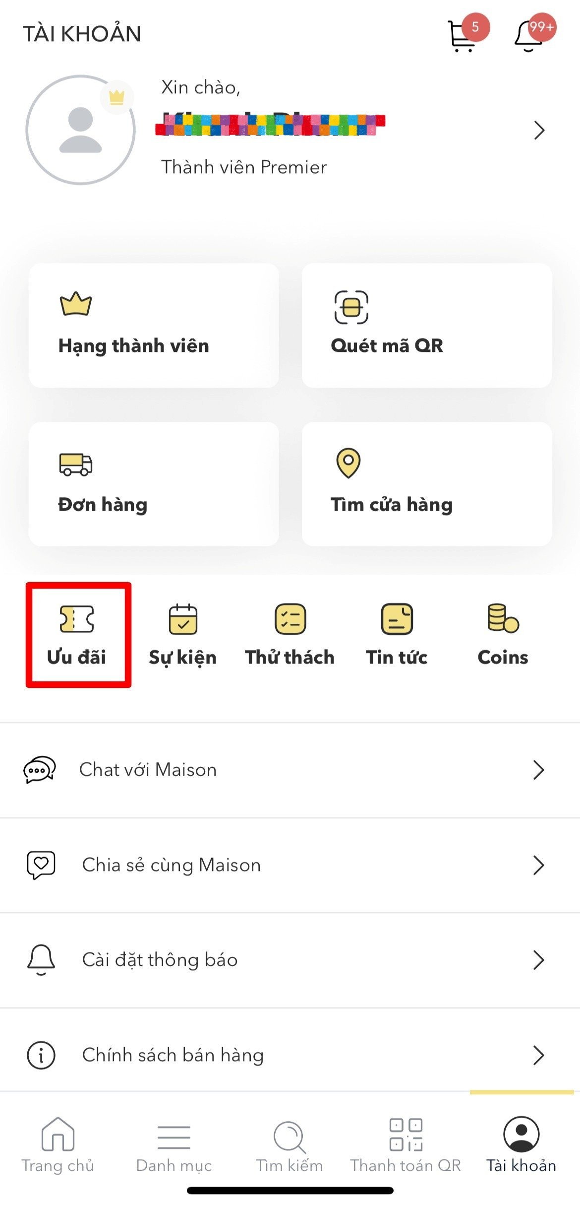 - Kiểm tra E-Voucher trên Ứng dụng Maison Online, ở mục Ưu đãi > Ưu đãi của tôi.