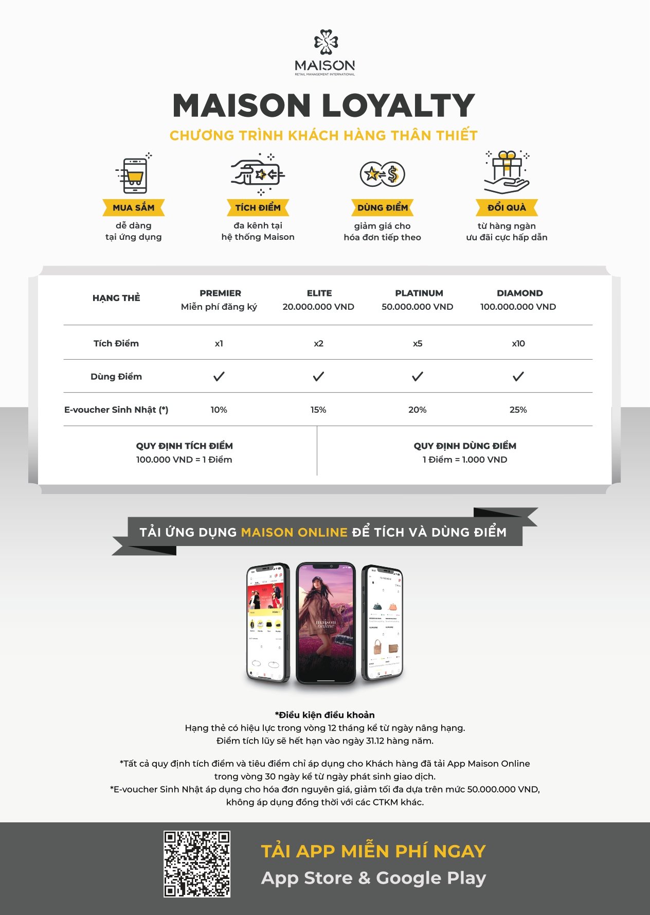 - Quý Khách cần tải app Maison Online để được tiếp tục tích điểm thành viên.