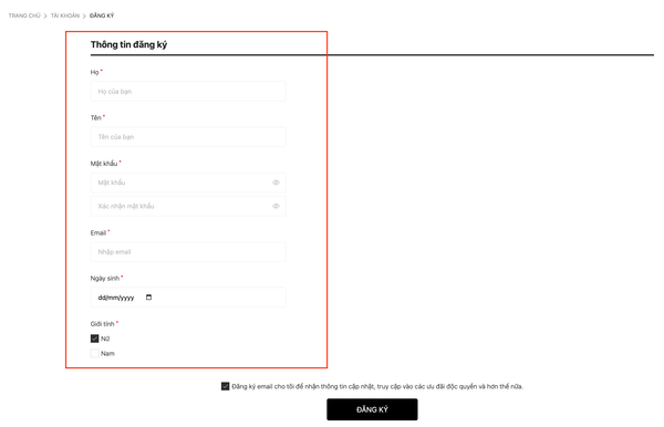 Bước 1: Quý Khách truy cập website: urbanrevivo.com.vn và click chọn vào tạo tài khoản