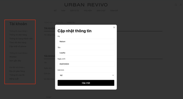 Bước 3: Sau khi tạo thành công, hệ thống sẽ đưa Quý Khách Hàng tới trang chủ Urban Revivo Việt Nam