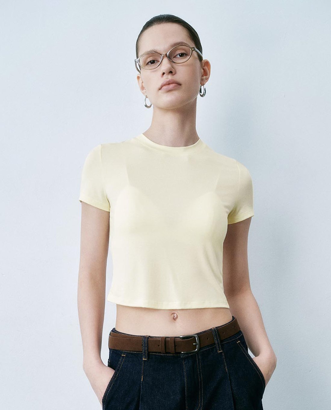 Áo croptop nữ cổ tròn tay ngắn cut out