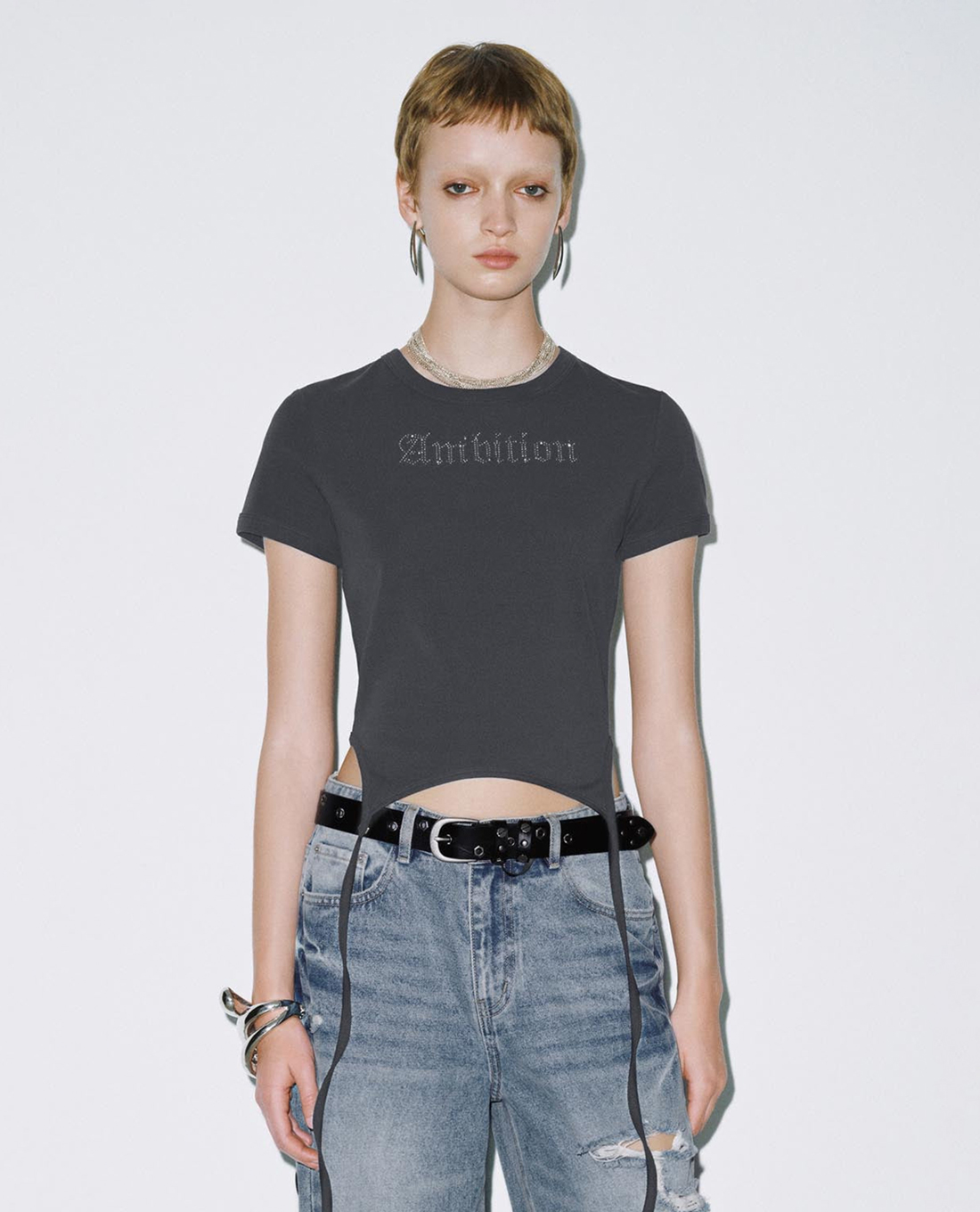 Áo croptop nữ cổ tròn tay ngắn phối tua rua