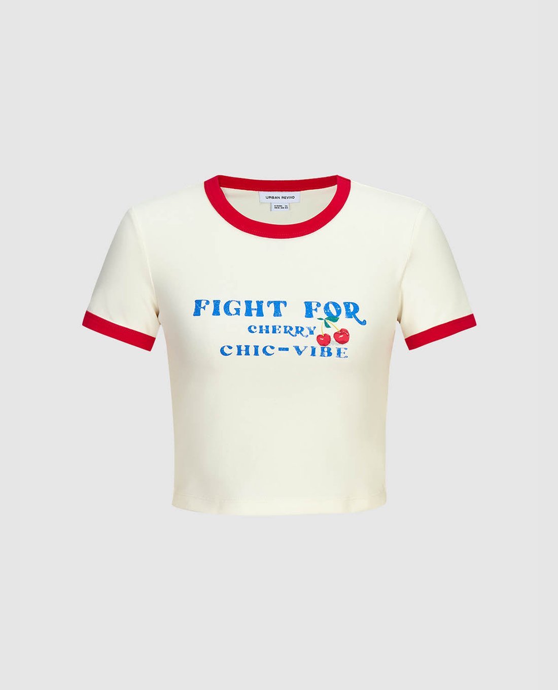 Áo croptop nữ cổ tròn tay ngắn Printed