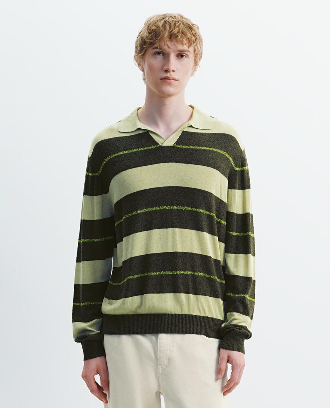 Áo dệt kim nam cổ bẻ tay dài sọc ngang