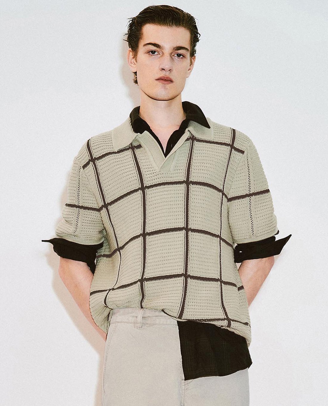 Áo dệt kim nam cổ bẻ tay ngắn thời trang