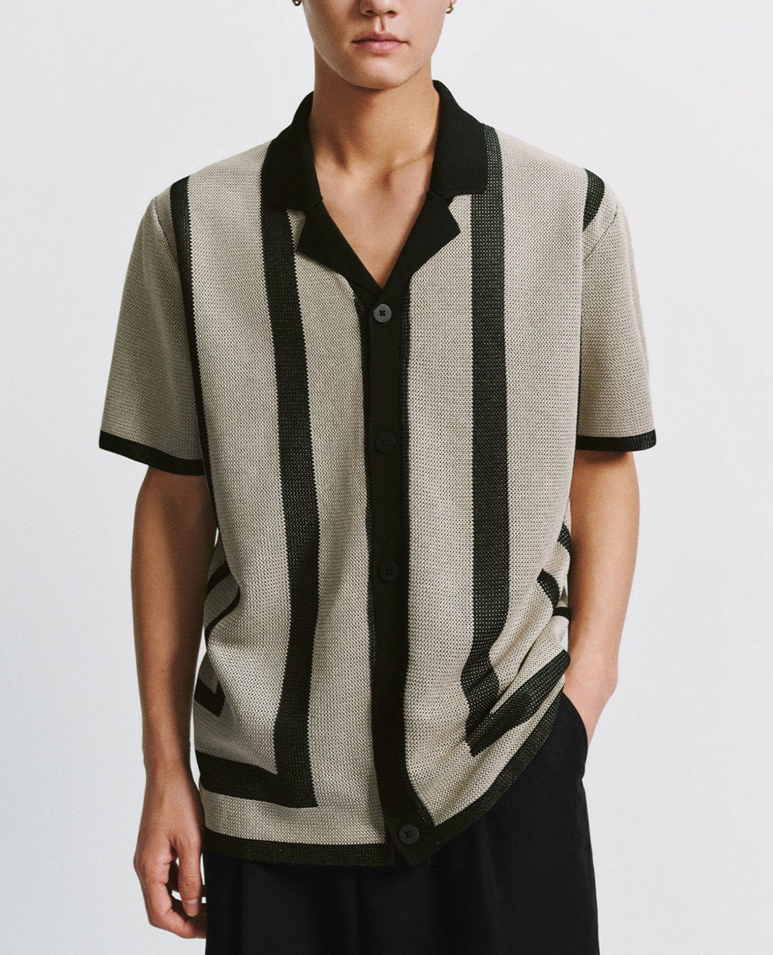 Áo dệt kim nam cổ bẻ tay ngắn