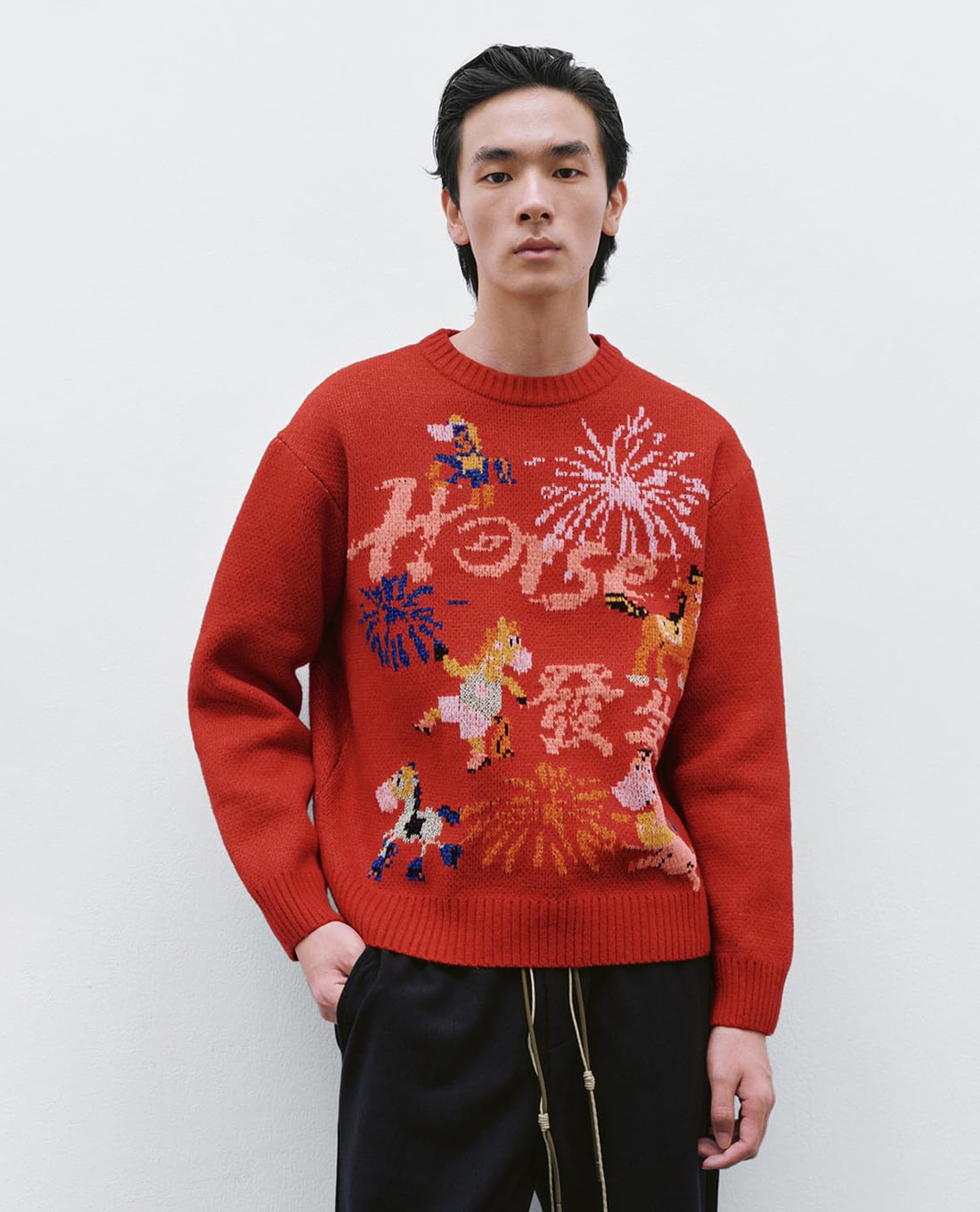 Áo dệt kim nam cổ tròn họa tiết lễ hội