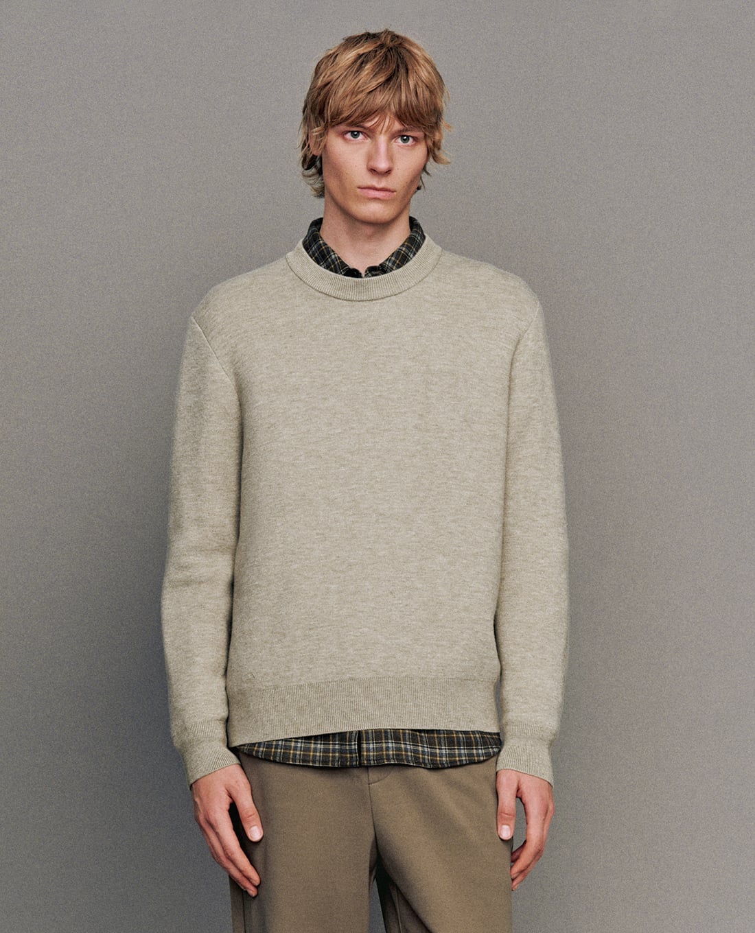 - Thiết kế áo dệt kim cổ tròn tay dài tối giản, dễ mặc
