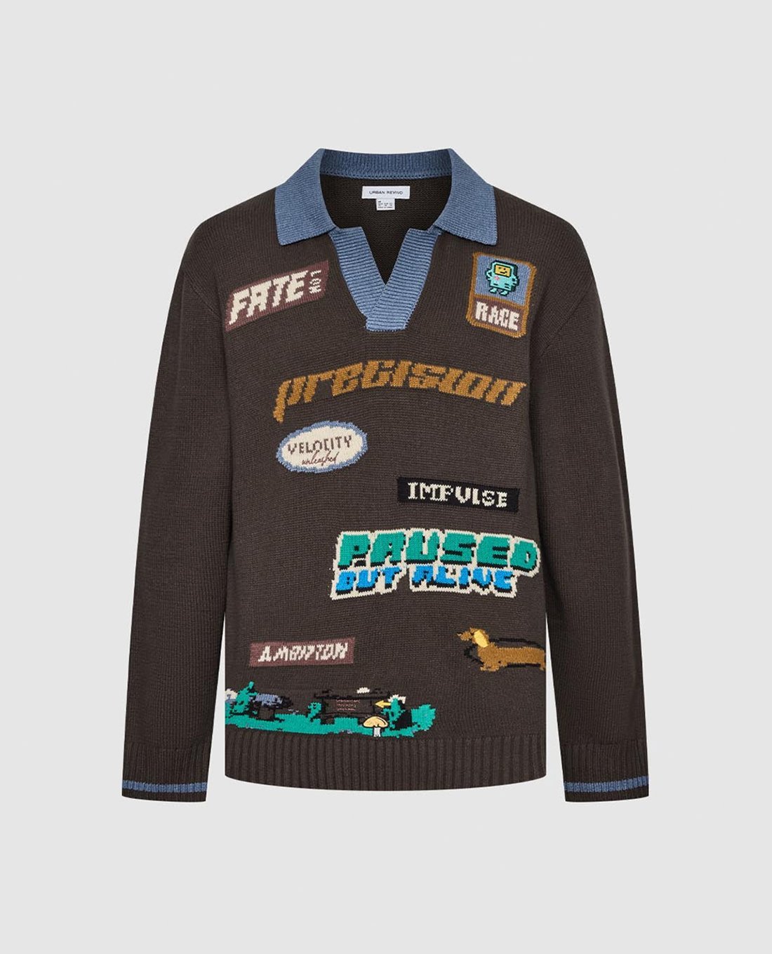 Áo dệt kim nam tay dài phối họa tiết chữ