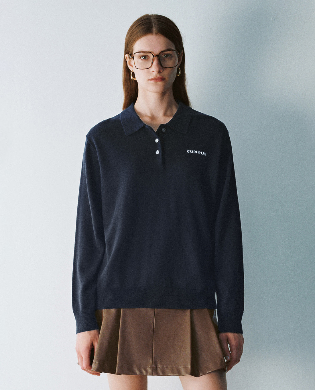 Áo dệt kim nữ cổ bẻ tay dài Button Half Placket Loose