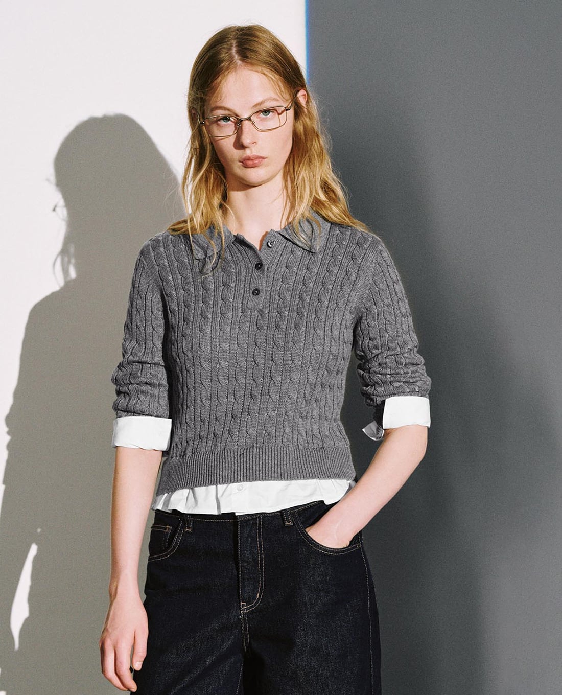 - Cổ polo và gấu áo giả sơ mi tạo hiệu ứng layering tinh tế