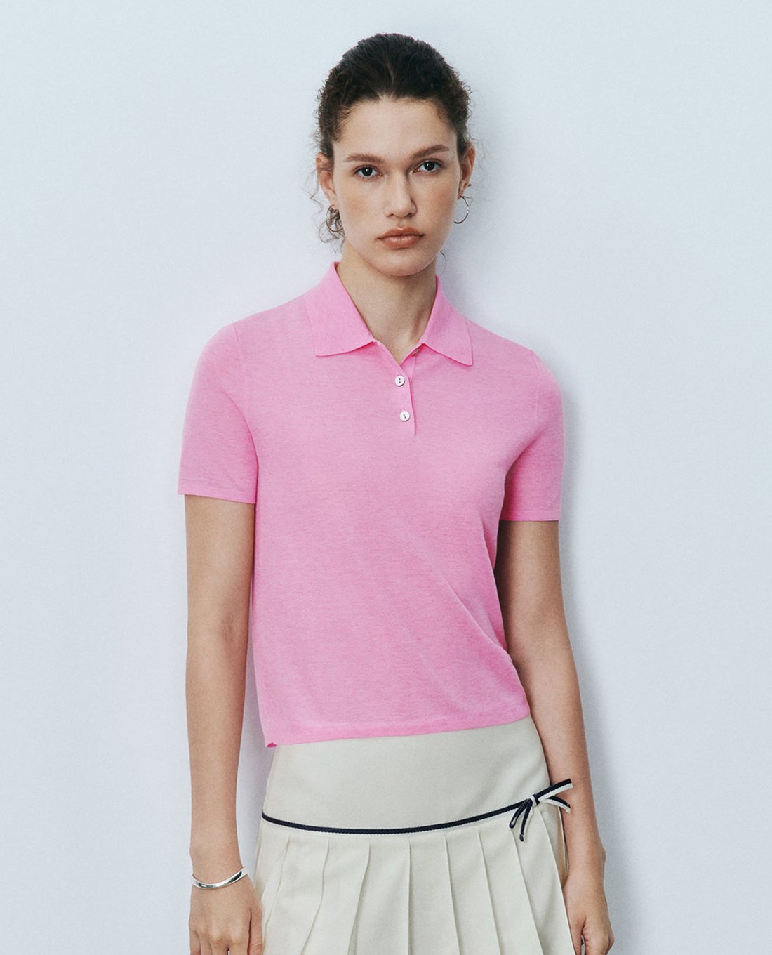 Áo dệt kim nữ cổ bẻ tay ngắn