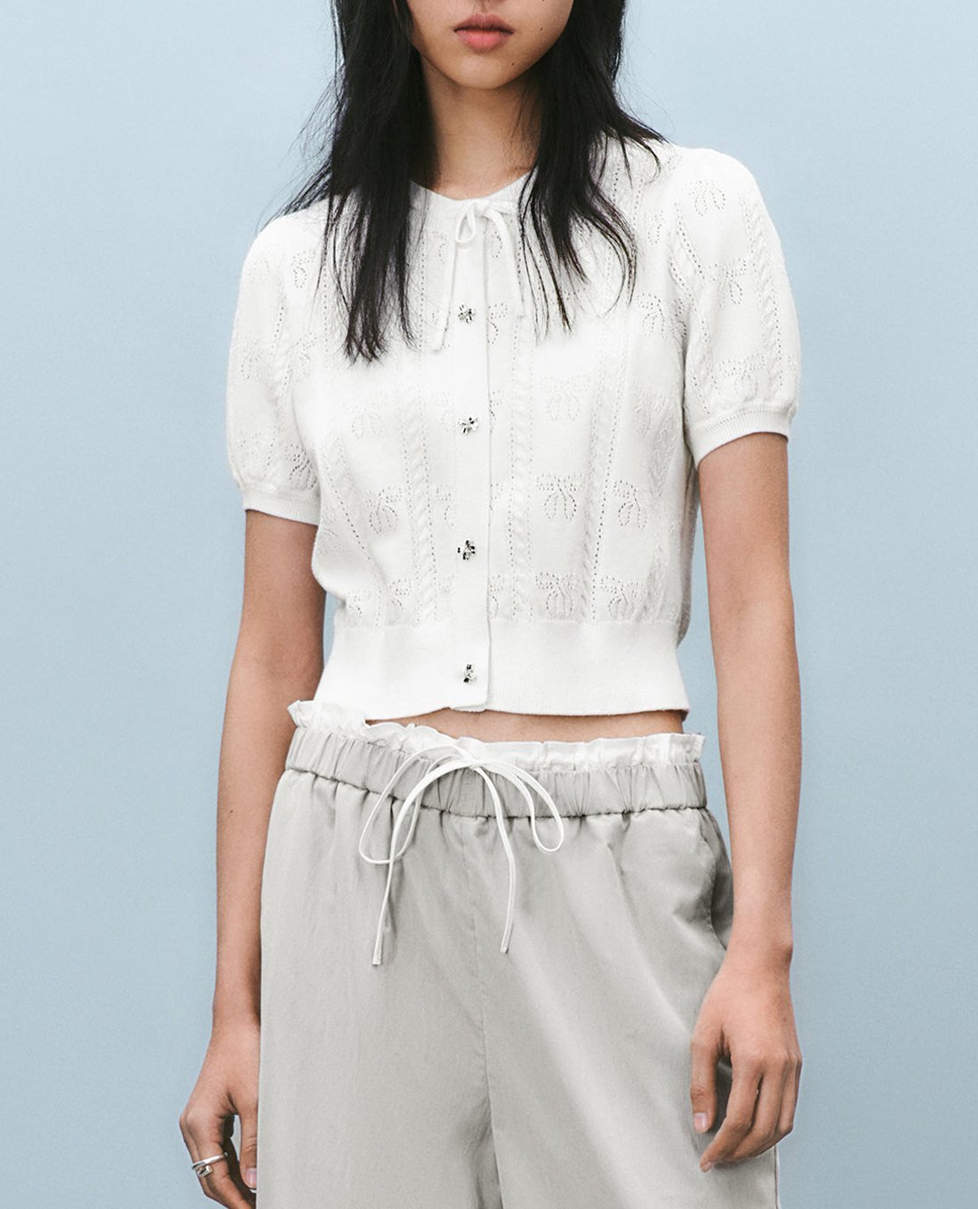 Áo dệt kim nữ cổ bẻ tay ngắn