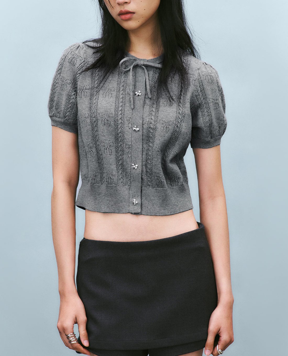 Áo dệt kim nữ cổ bẻ tay ngắn