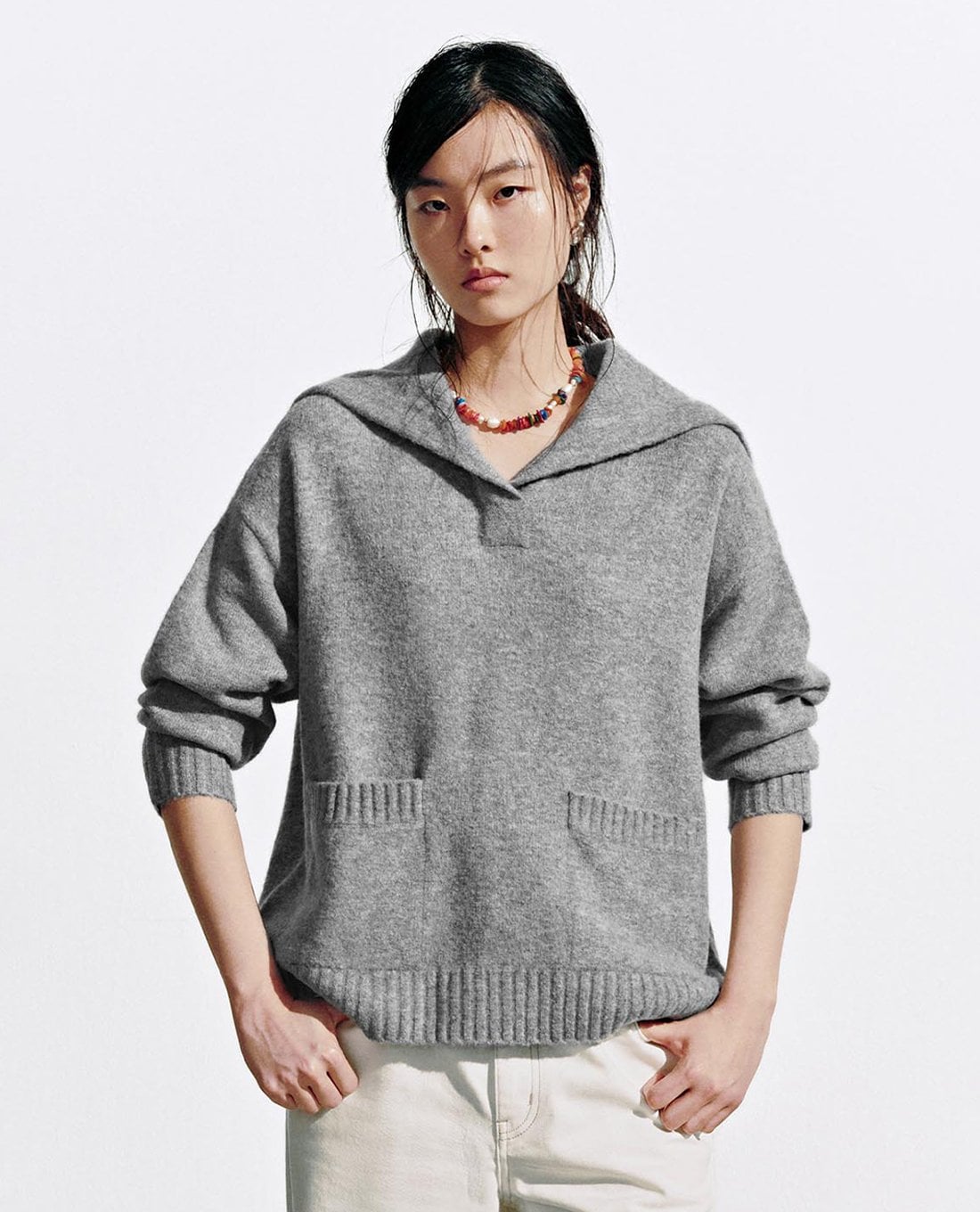 Áo dệt kim nữ cổ thủy thủ tay dài