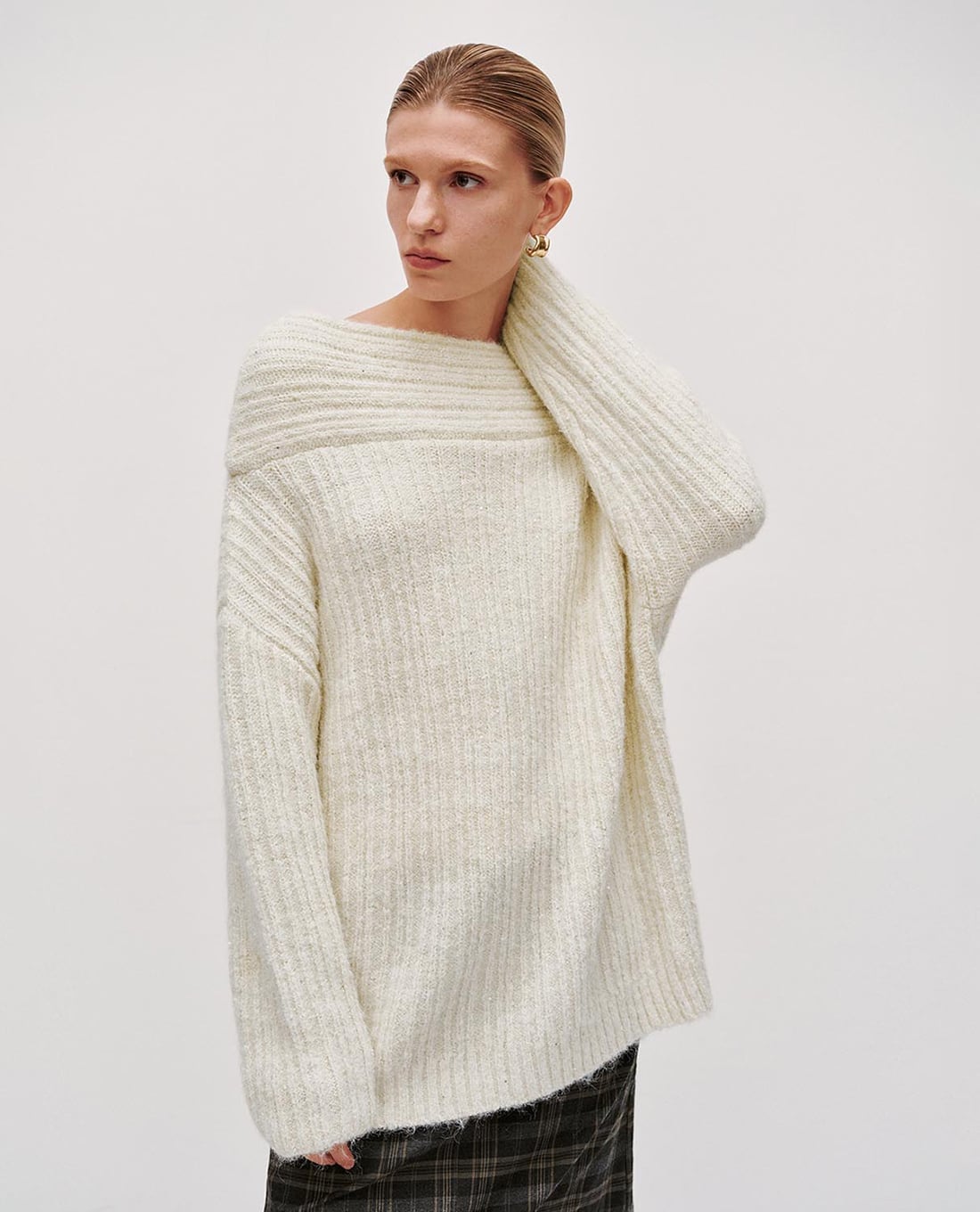 Áo dệt kim nữ cổ thuyền tay dài phom rộng