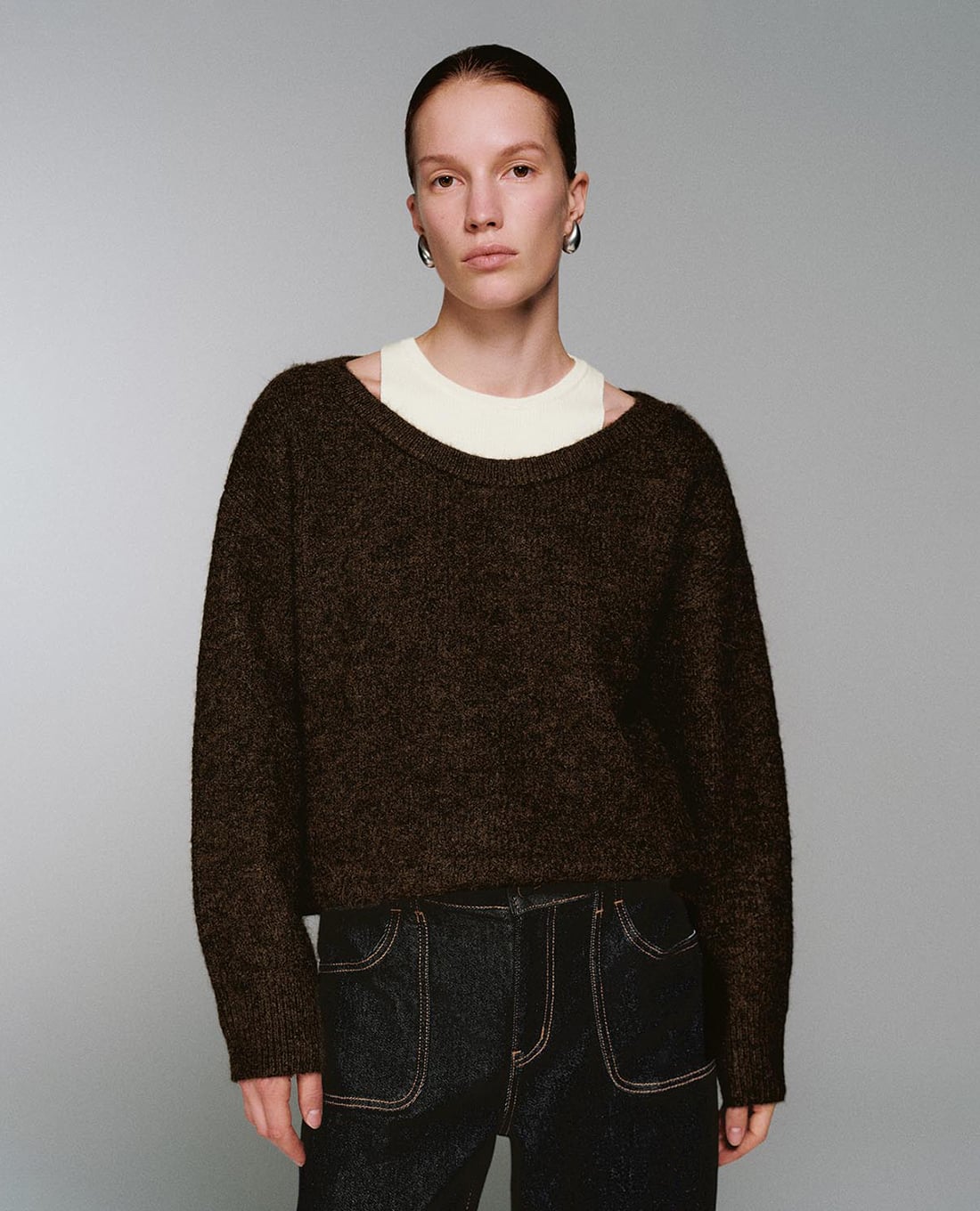 - Thiết kế độc đáo với phần cổ dệt tương phản tạo hiệu ứng layer