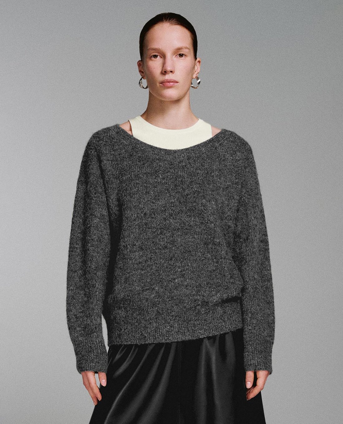 - Thiết kế độc đáo với phần cổ dệt tương phản tạo hiệu ứng layer