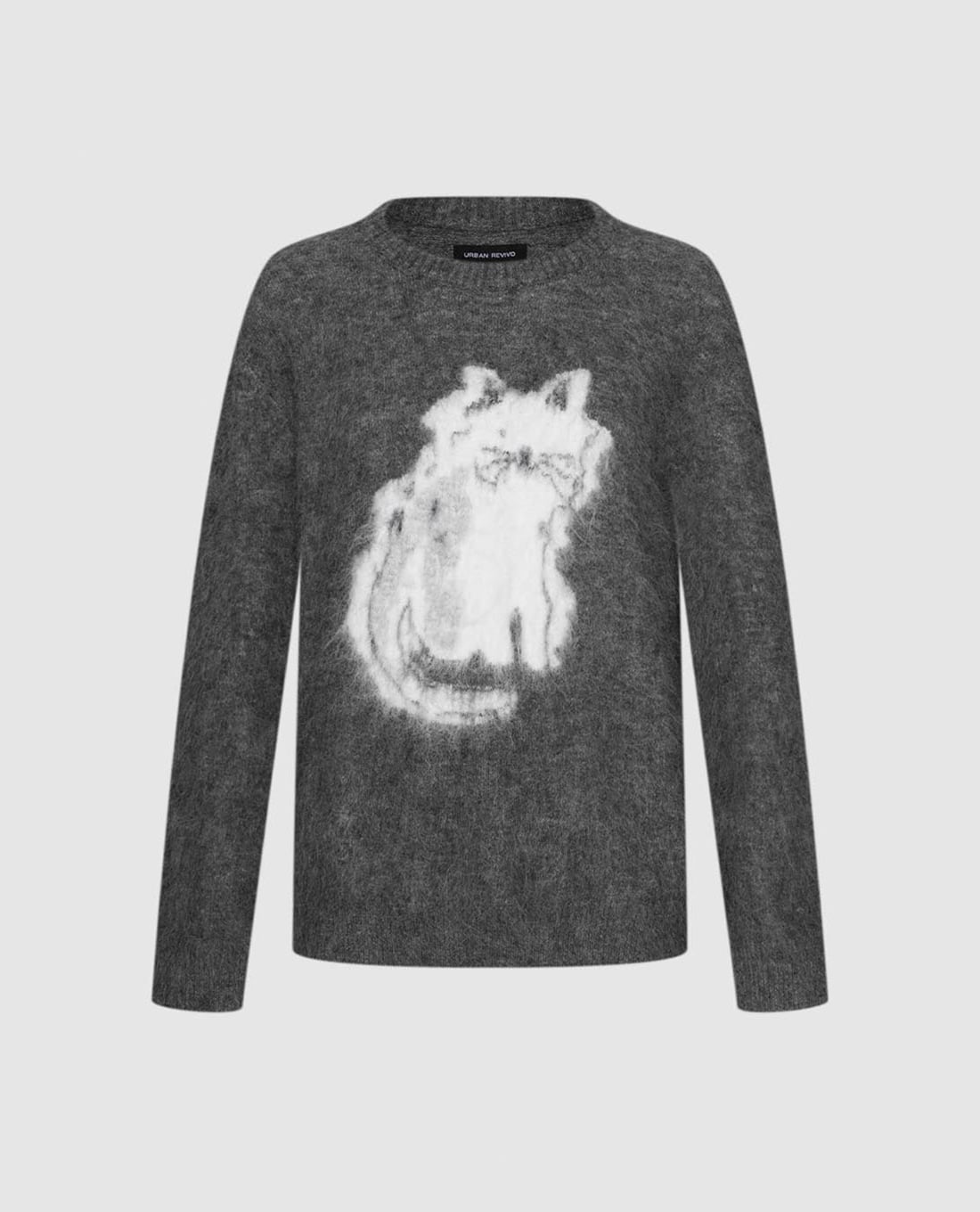Áo dệt kim nữ cổ tròn tay dài phối họa tiết