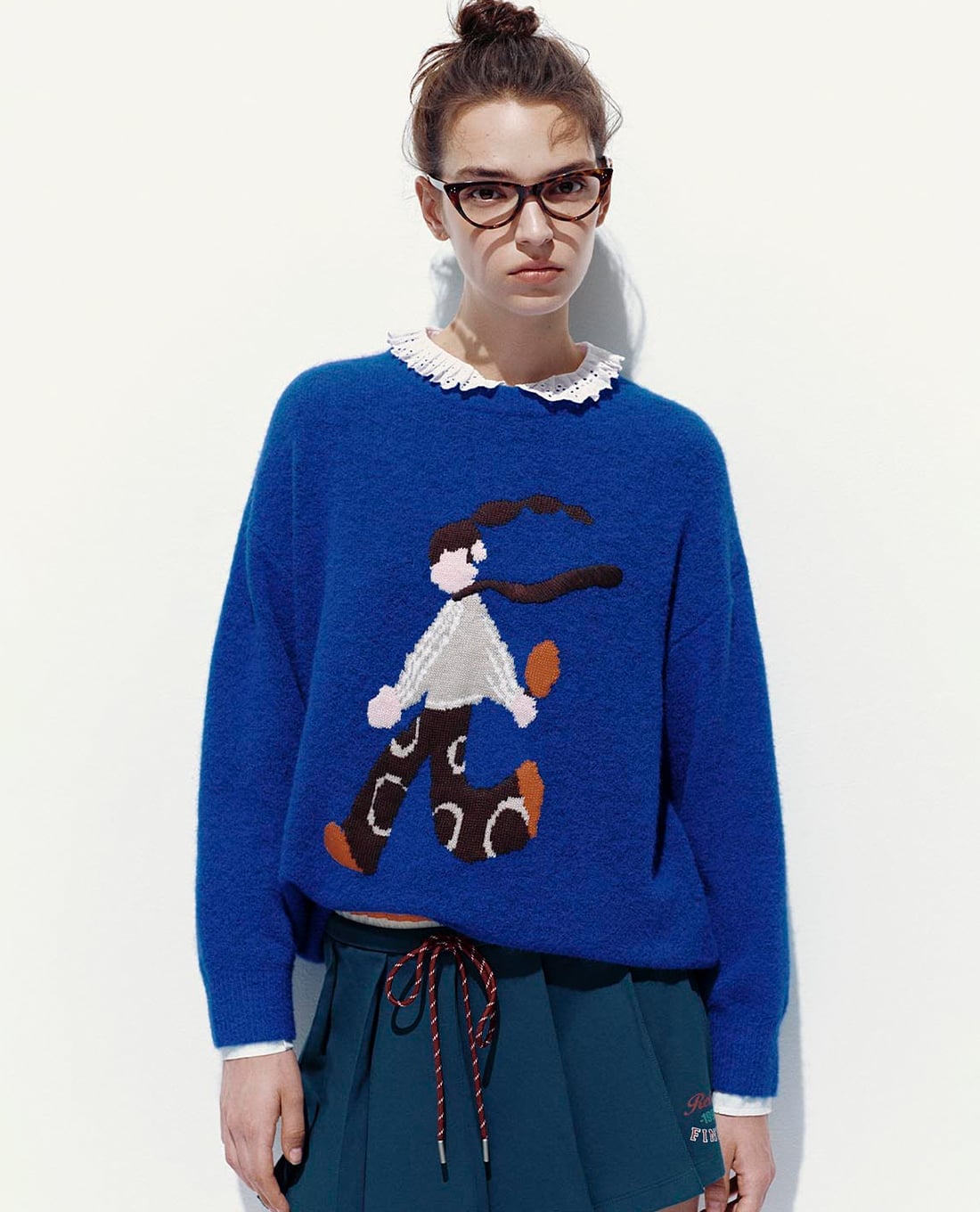 Áo dệt kim nữ cổ tròn tay dài phối họa tiết