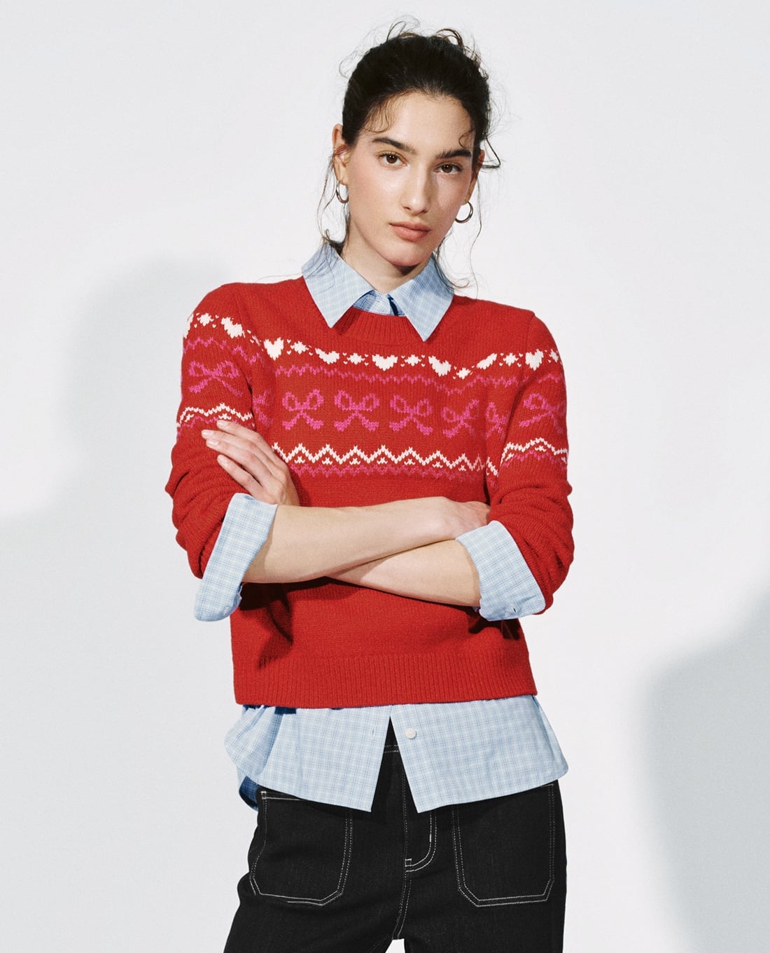 - Họa tiết nơ và trái tim đan nổi tạo cảm giác ngọt ngào
