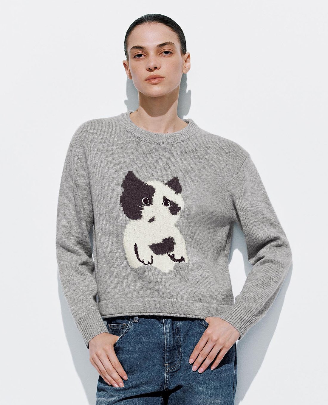 Áo dệt kim nữ cổ tròn tay dài phối hoạ tiết