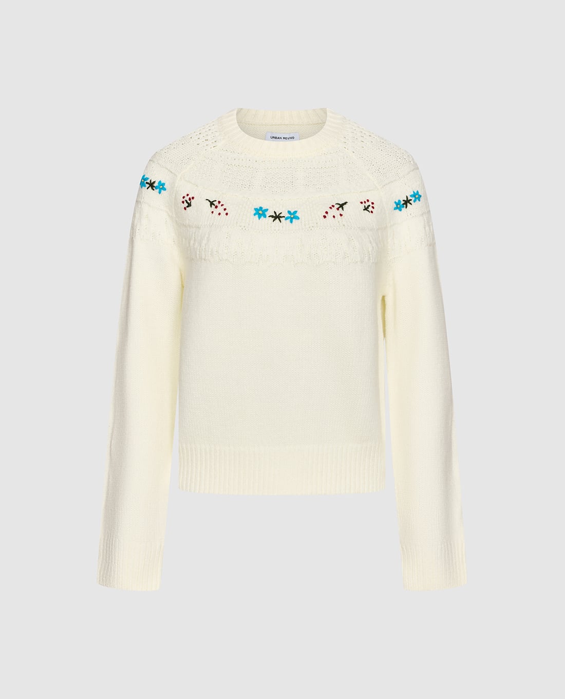 Áo dệt kim nữ cổ tròn tay dài thêu hoa