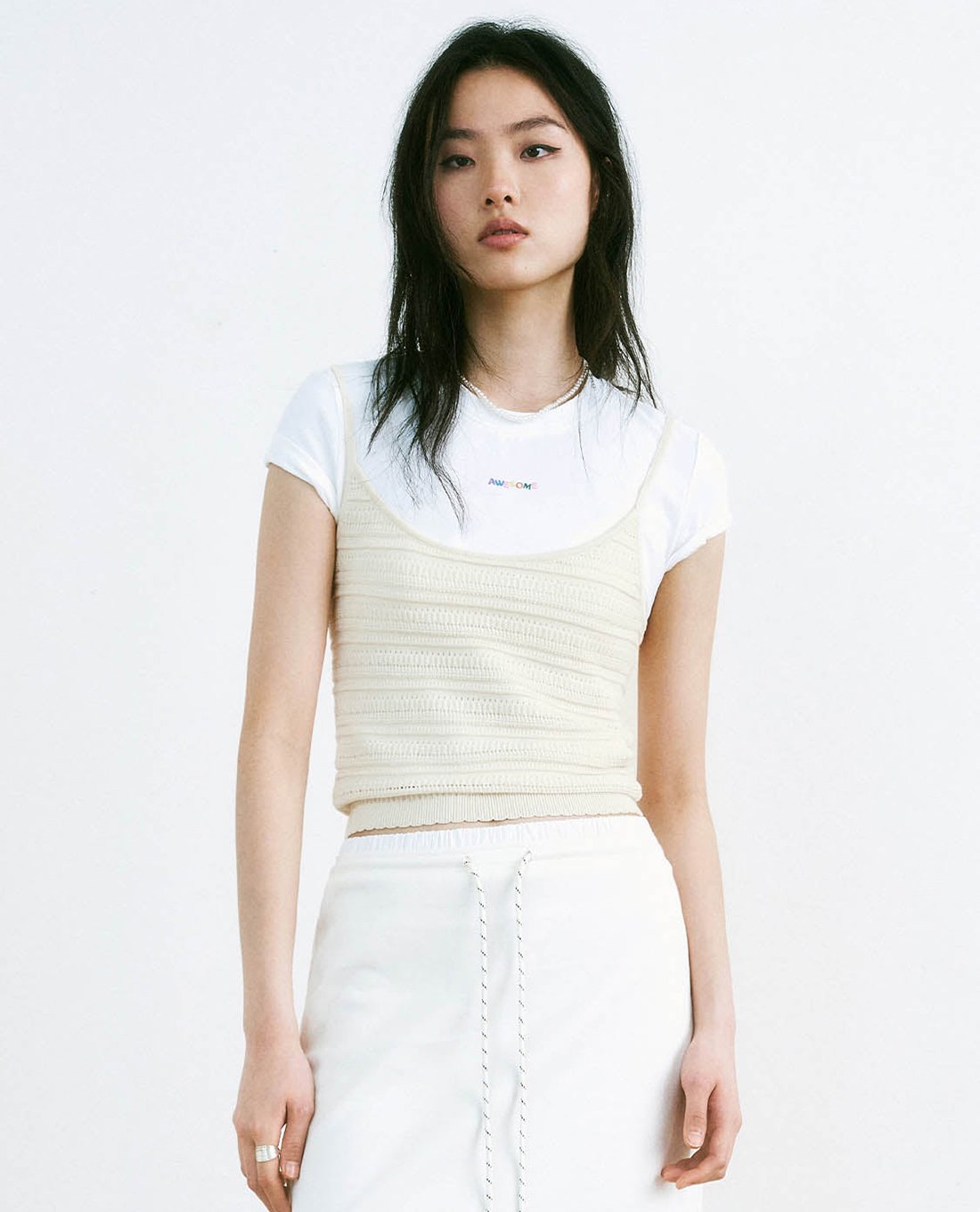 Áo dệt kim nữ cổ tròn tay ngắn Cami