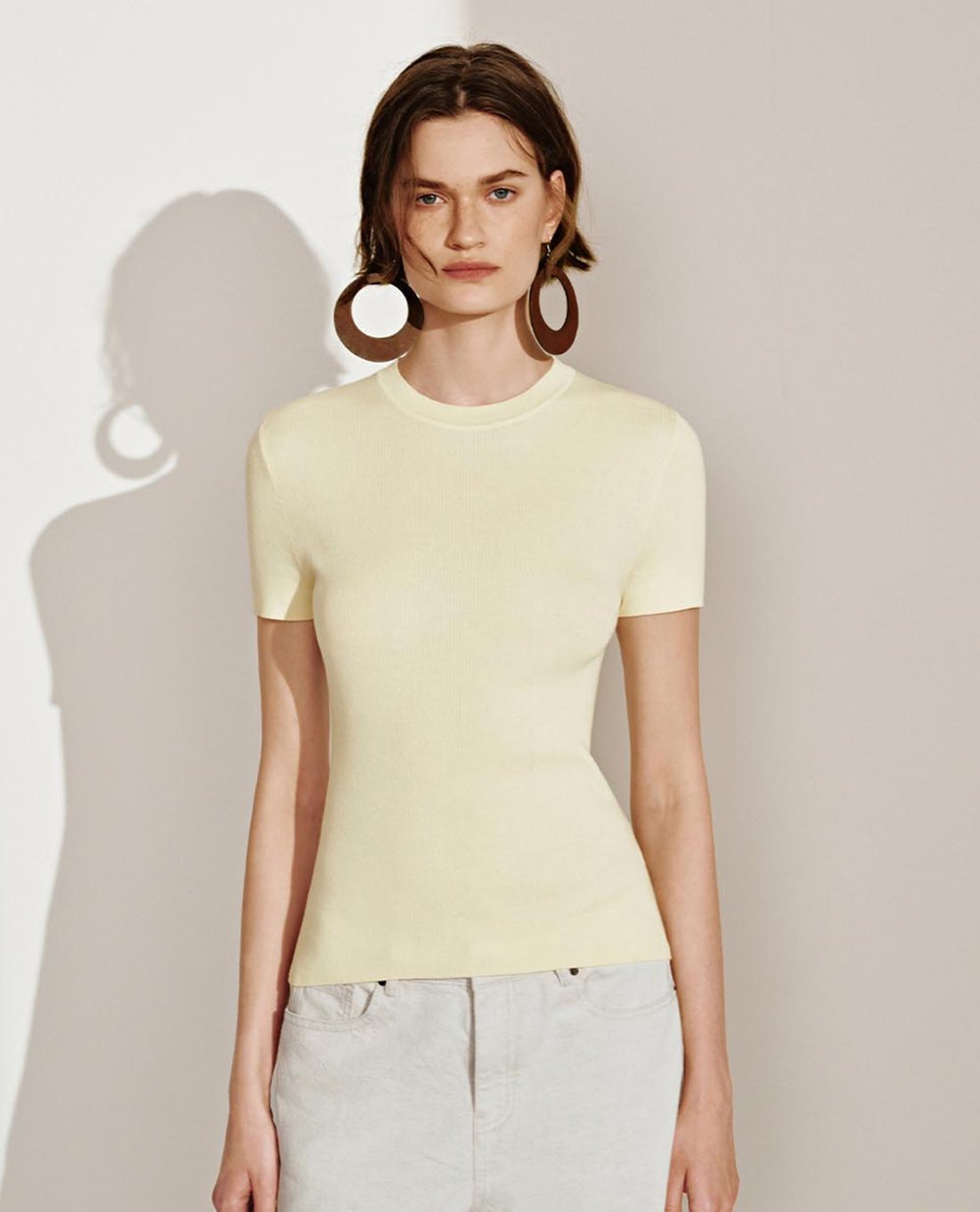 Áo dệt kim nữ cổ tròn tay ngắn phom ôm