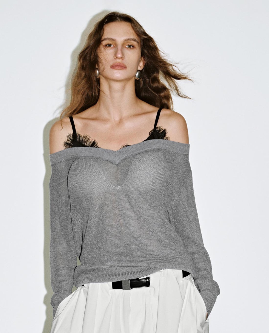 - Thiết kế áo trễ vai gợi cảm tôn bờ vai và xương quai xanh
