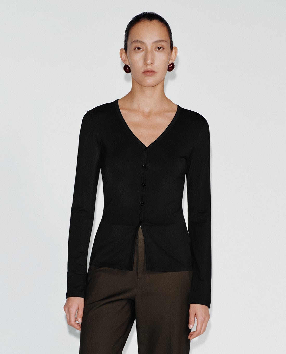 Áo dệt kim nữ cổ V tay dài phom ôm
