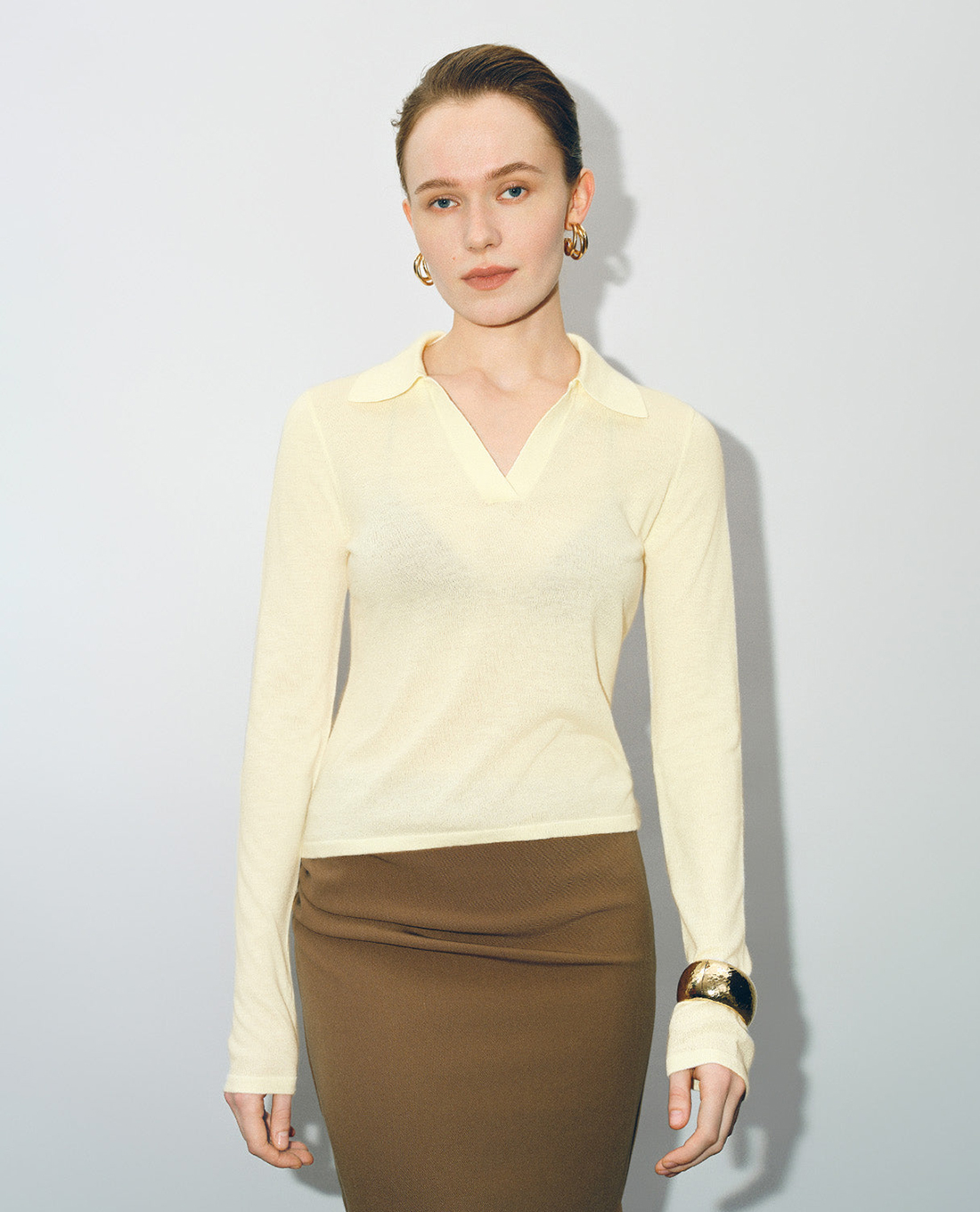 - Thiết kế cổ V, tay dài thanh lịch, cổ điển