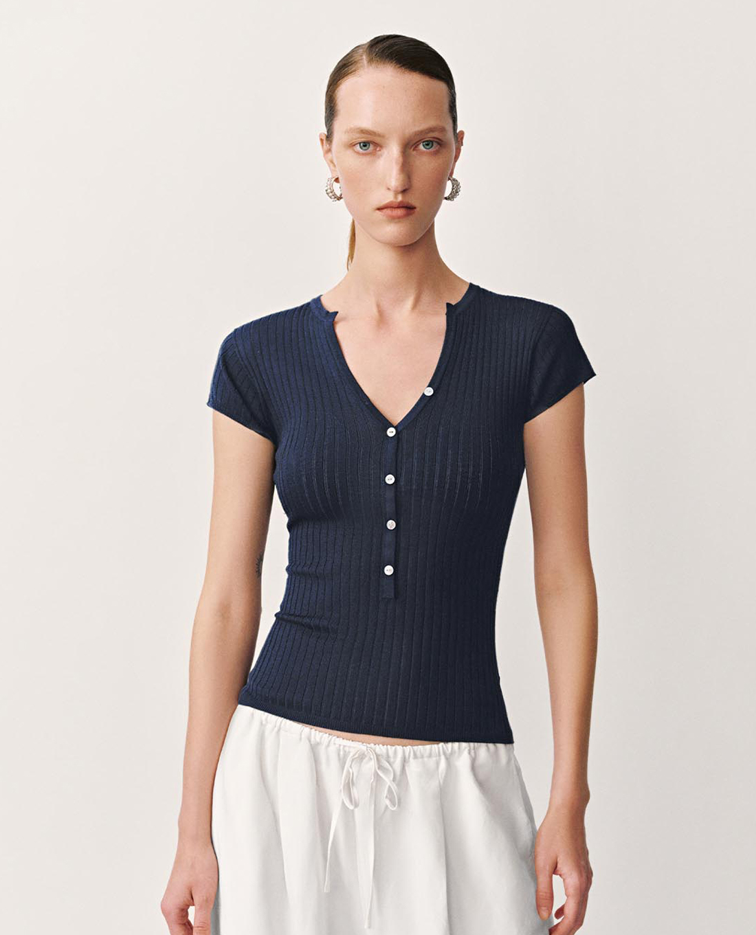 - Kiểu dáng tay ngắn ôm sát cơ thể tôn dáng và hiện đại