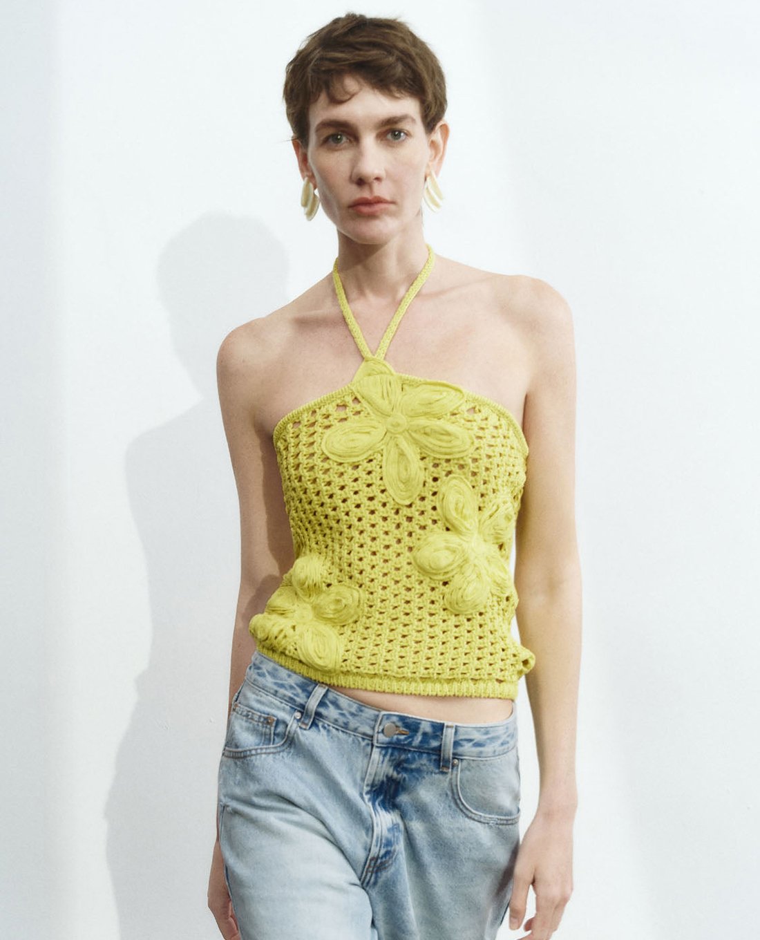 Áo dệt kim nữ cổ yếm nữ tính