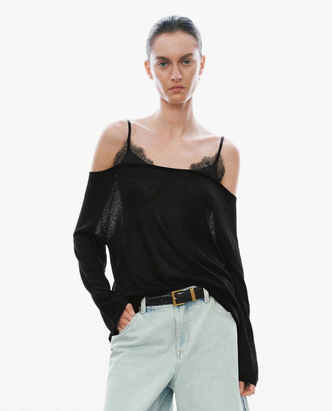 - Thiết kế áo trễ vai kết hợp hai dây mảnh đầy cuốn hút