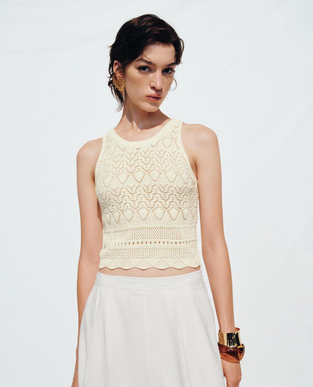 - Họa tiết đan móc nổi tinh xảo kết hợp đường bo gấu lượn sóng nữ tính