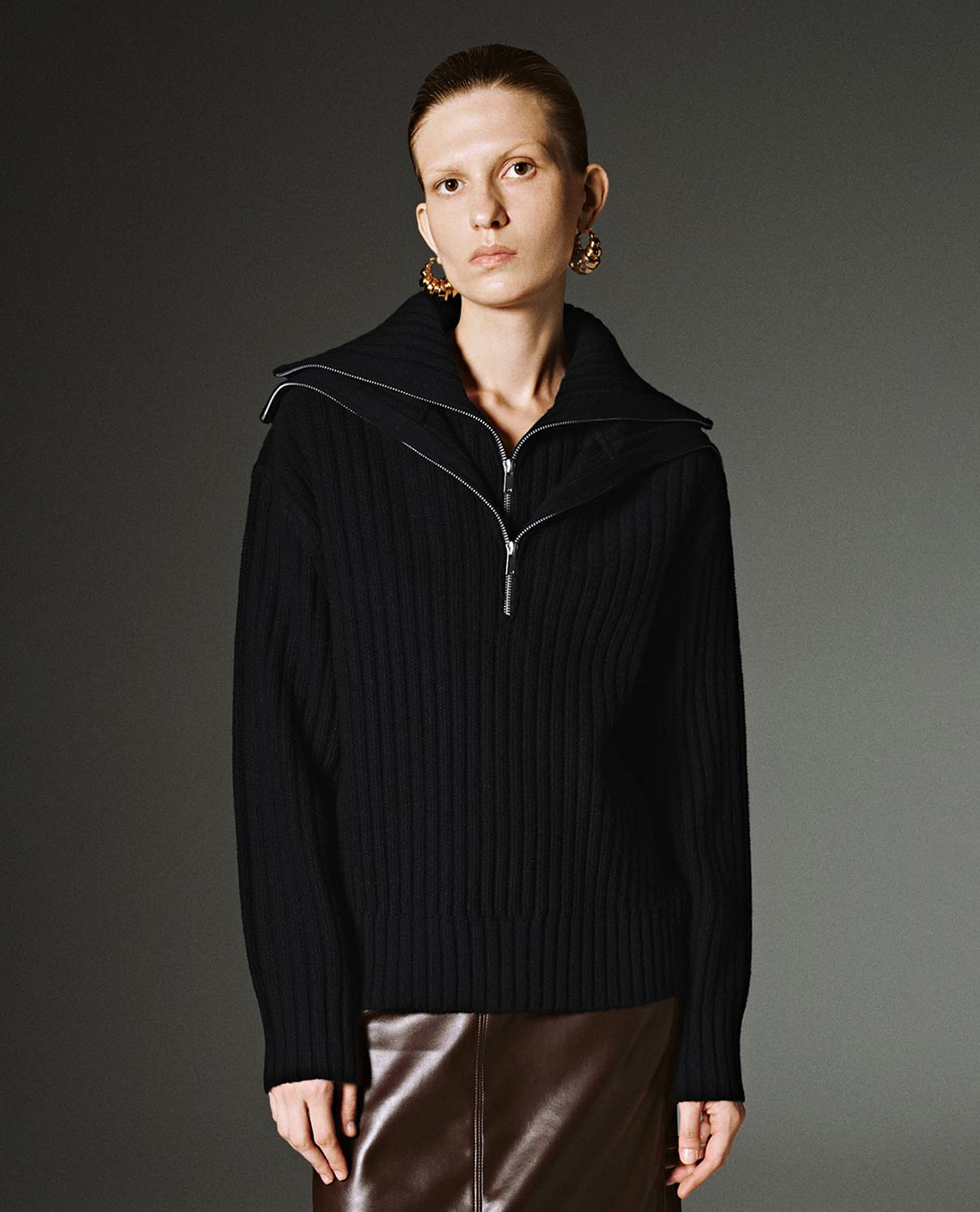 Áo dệt kim nữ tay dài phối khóa zip đôi
