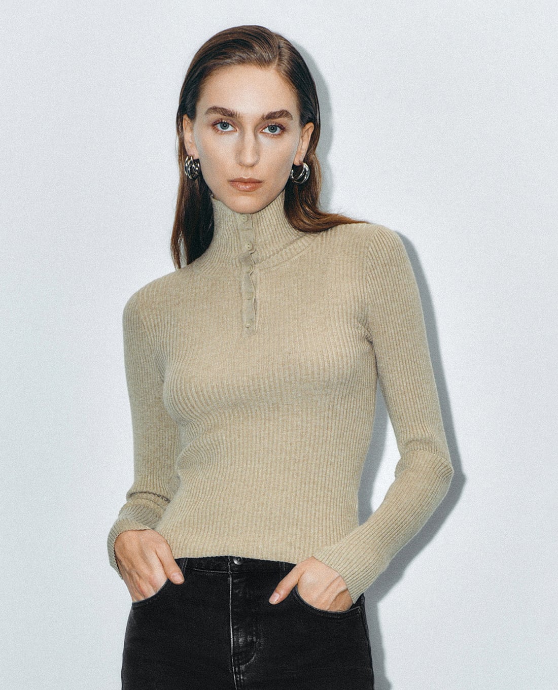 Áo dệt kim nữ tay dài phom ôm hiện đại