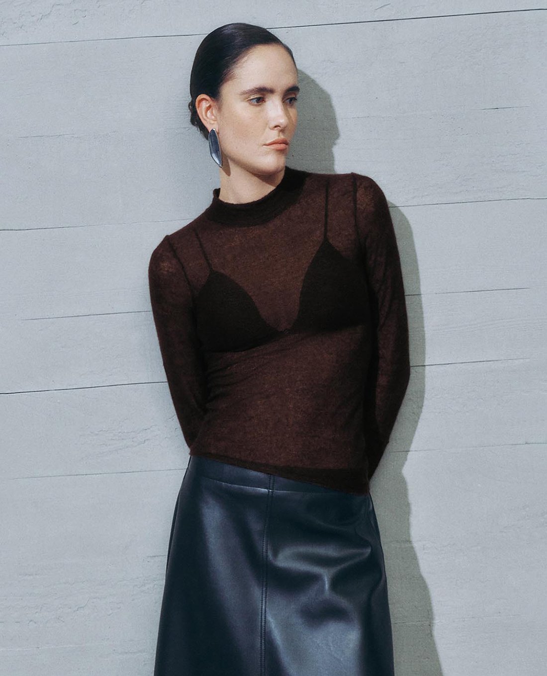 Áo dệt kim nữ tay dài xuyên thấu