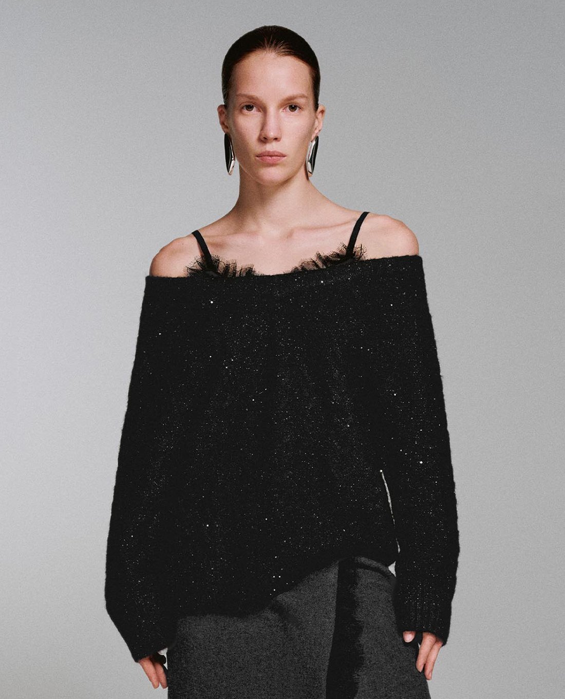 - Chất liệu len ánh kim lấp lánh mang lại vẻ nổi bật