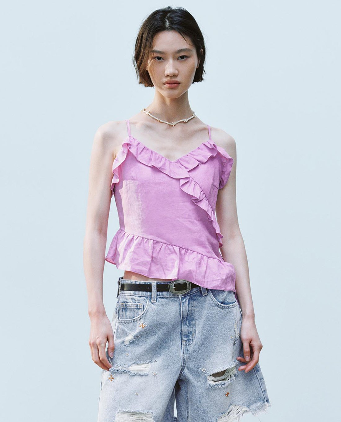 Áo hai dây nữ cổ V phối bèo
