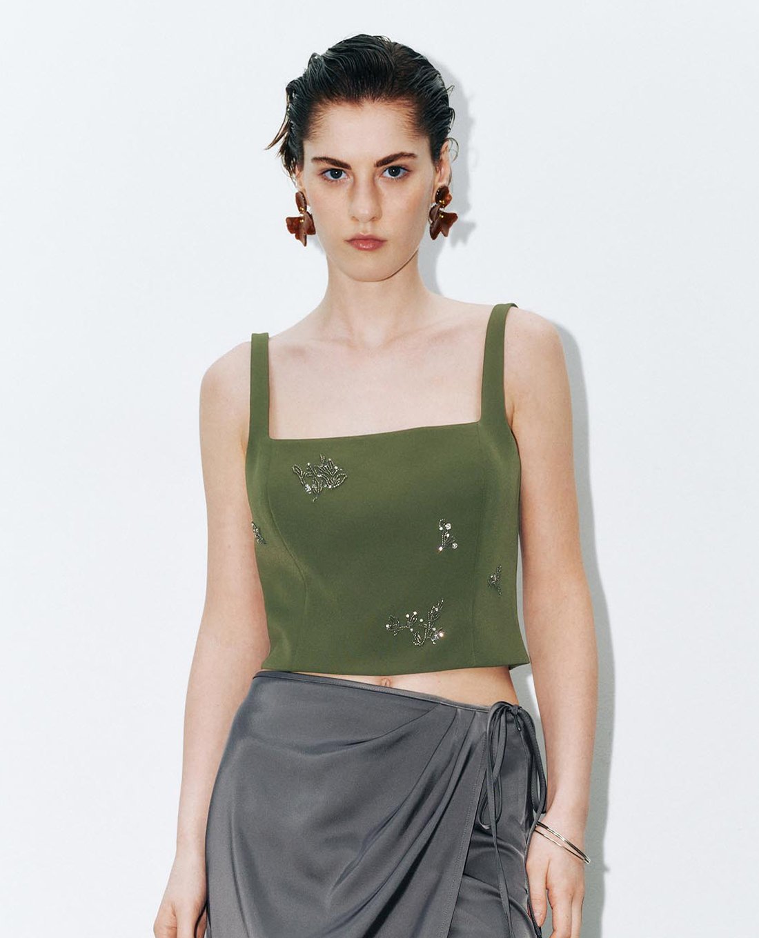 Áo hai dây nữ cổ vuông đính đá