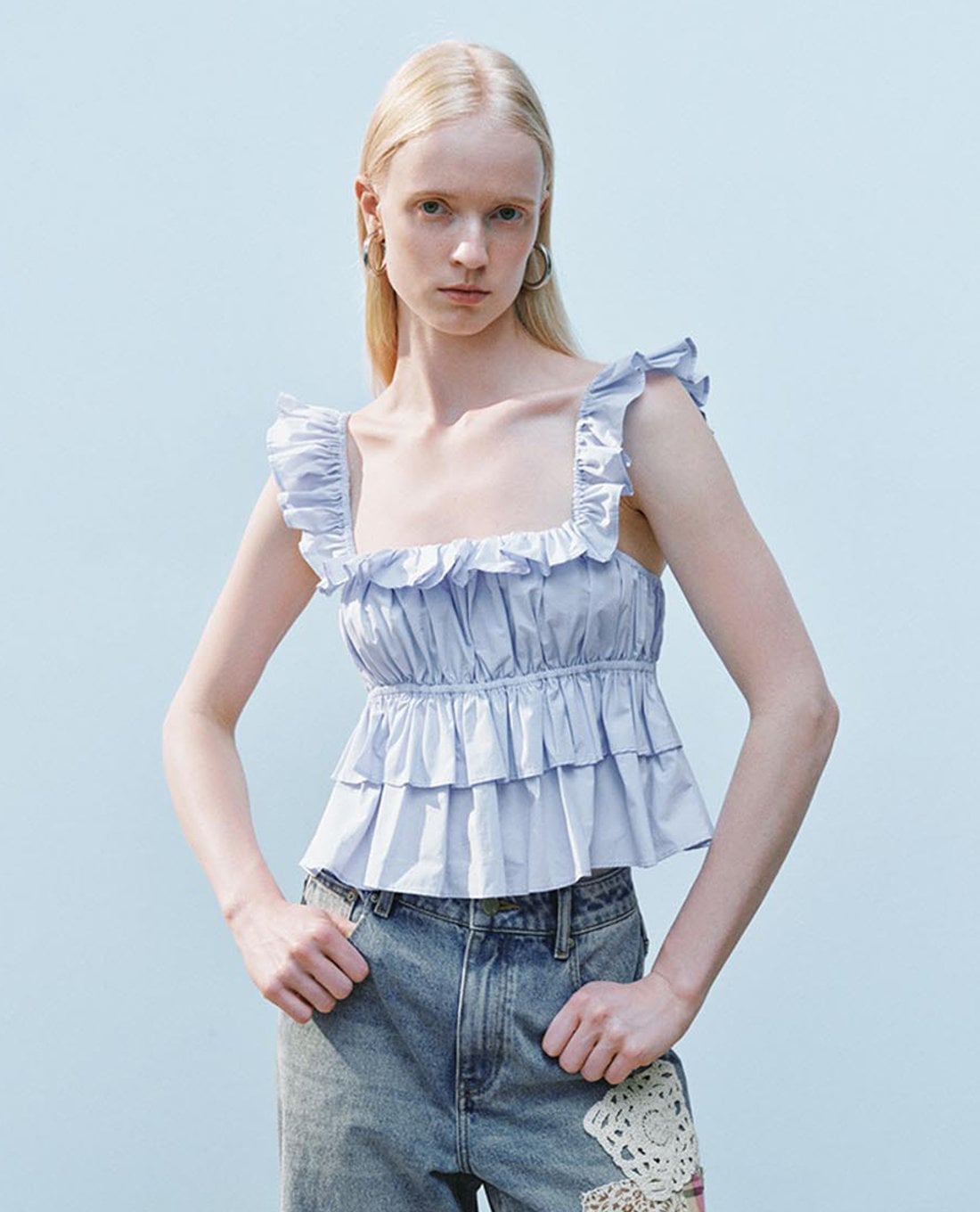 • Kiểu dáng hai dây to bản với chi tiết bèo xếp tầng nữ tính
