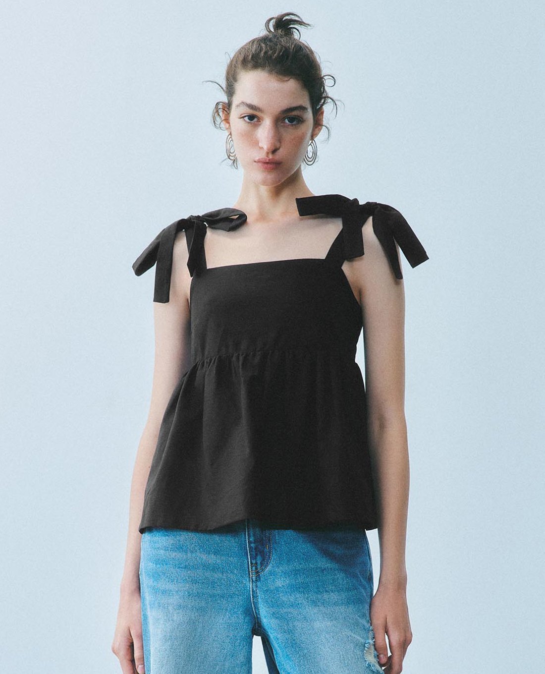 Áo hai dây nữ cổ vuông thắt nơ