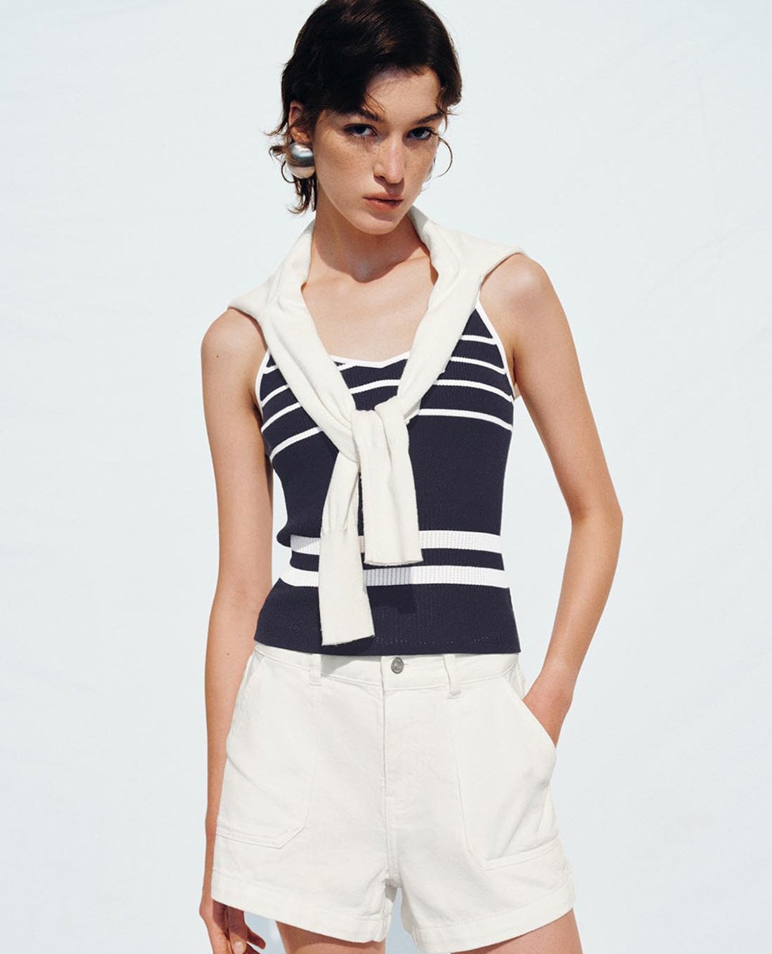 Áo hai dây nữ dệt kim cổ V kẻ sọc