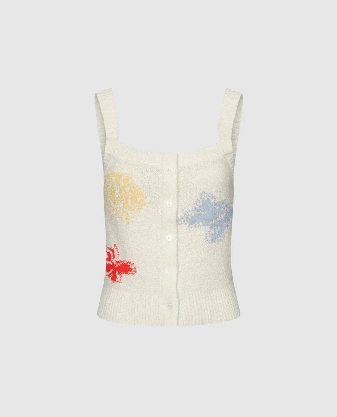 Áo hai dây nữ dệt kim cổ vuông phối nút