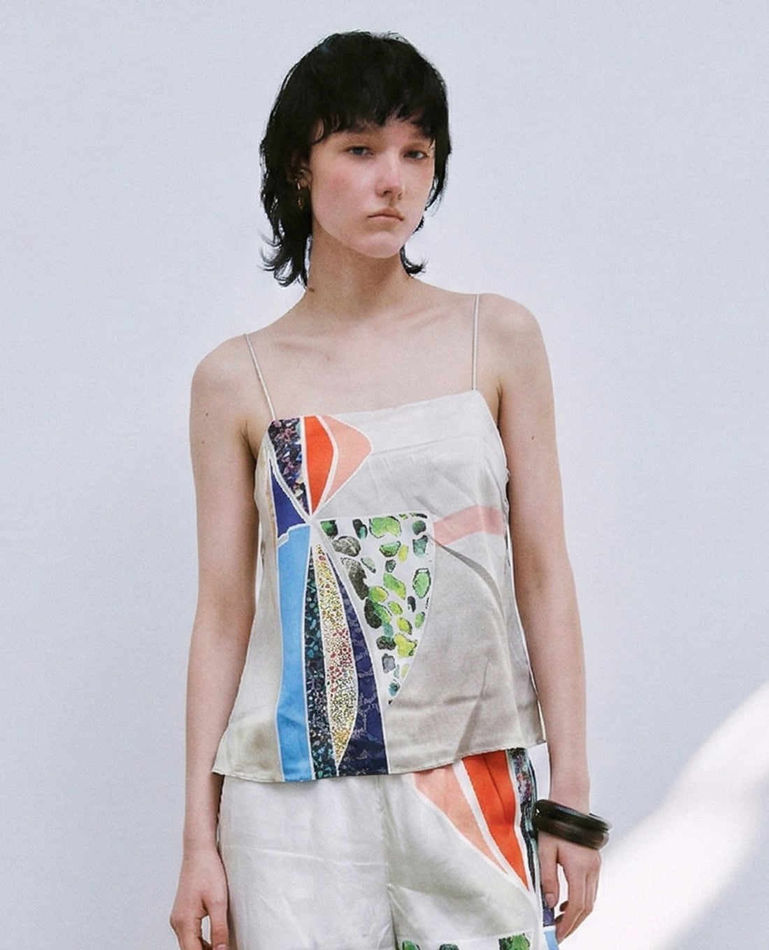 Áo hai dây nữ lụa in họa tiết nghệ thuật