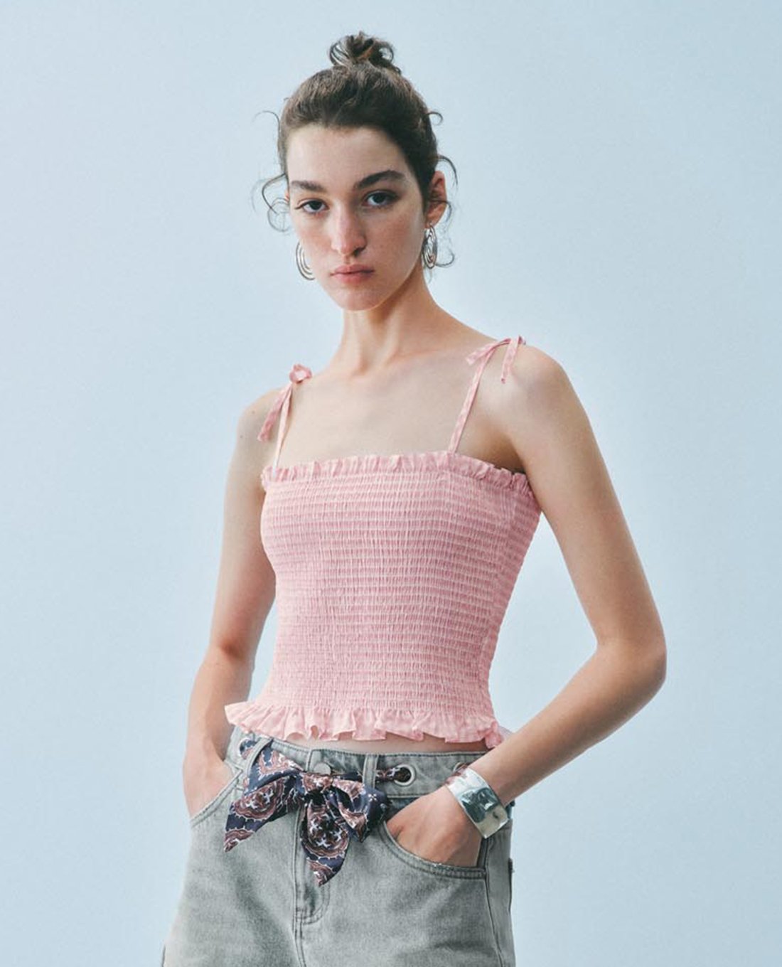 Áo hai dây nữ phối bèo nhún thắt nơ