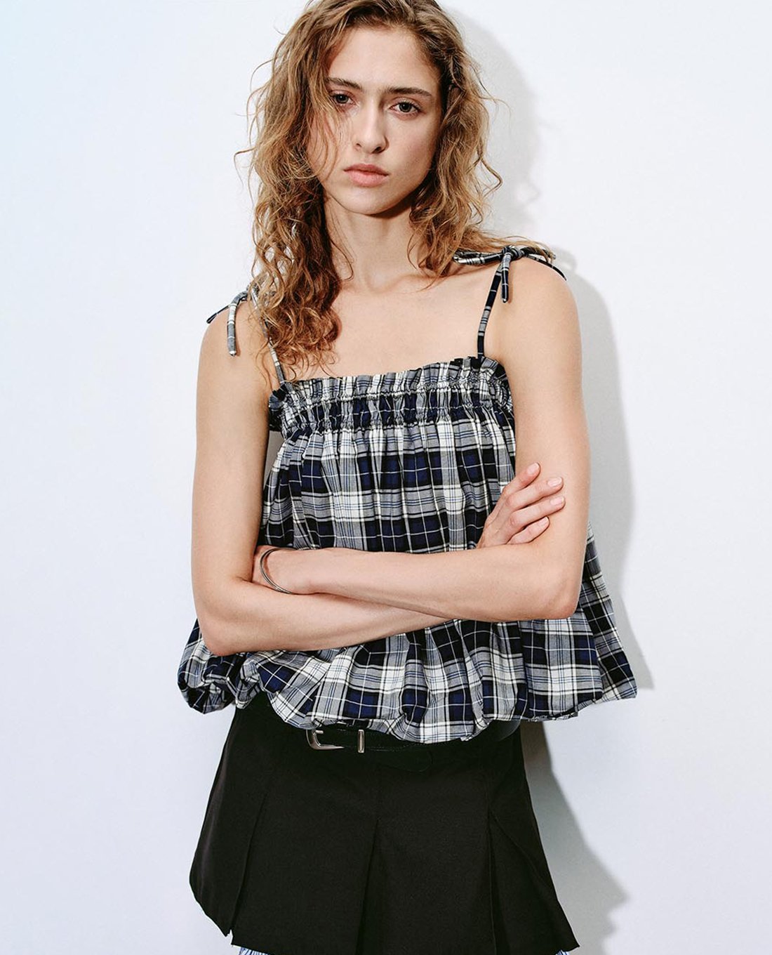 Áo hai dây nữ phối caro dáng xoè