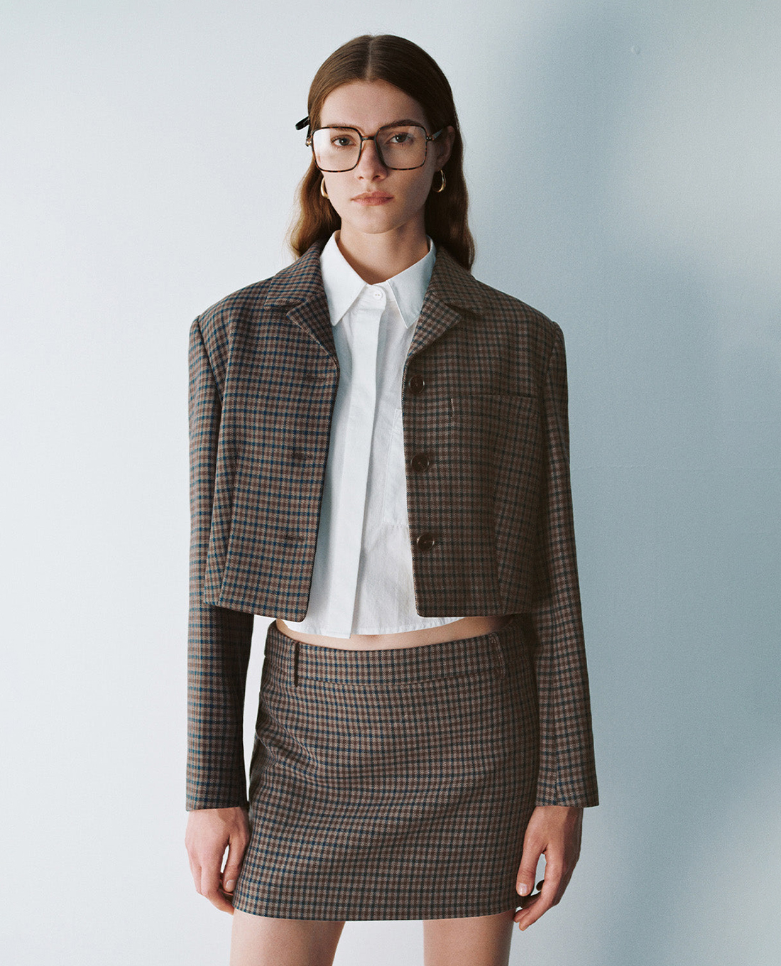 Áo khoác blazer nữ cổ bẻ tay dài phom croptop Button Up